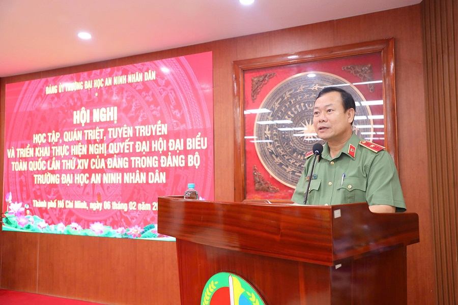 Sáng 06/02/2026, Đảng ủy Trường Đại học An ninh nhân dân (ANND) trang trọng tổ chức Hội nghị học tập, quán triệt, tuyên truyền và triển khai thực hiện Nghị quyết Đại hội Đại biểu toàn quốc lần thứ XIV của Đảng trong toàn Đảng bộ Nhà trường.