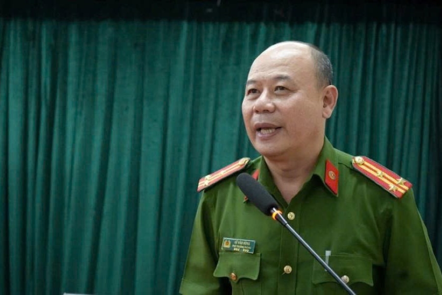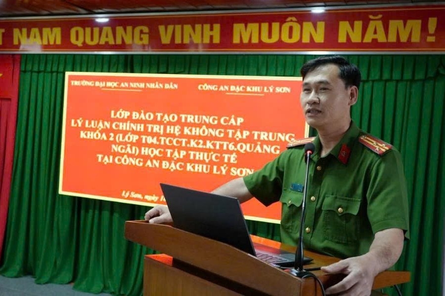 Đồng chí Thượng tá Lê Tấn Trưởng Công an đặc khu Lý Sơn, Tỉnh Quảng Ngãi báo cáo chuyên đề