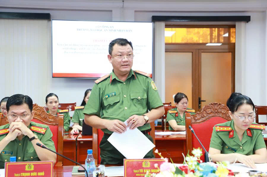 Dưới sự điều hành của PGS.TS, Đại tá Đặng Ngọc Toàn - Phó Hiệu trưởng, hội thảo đã lắng nghe nhiều tham luận có chất lượng, làm rõ các vấn đề lý luận và thực tiễn, tập trung vào đổi mới nội dung chương trình, phương pháp giảng dạy, ứng dụng công nghệ số, phát triển đội ngũ giảng viên, tăng cường gắn đào tạo ngoại ngữ - tin học với yêu cầu công tác, chiến đấu và nhiệm vụ bảo vệ an ninh quốc gia trong tình hình mới.