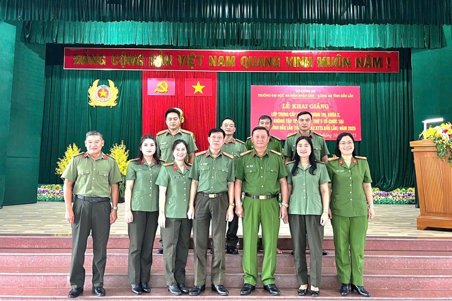 Ngày 20/10/2025, tại Trung tâm huấn luyện và bồi dưỡng nghiệp vụ Công an tỉnh Đắk Lắk, Trường Đại học An ninh nhân dân tổ chức Lễ Khai giảng lớp Trung cấp lý luận chính trị, khóa 2, hệ không tập trung, lớp thứ 5 tổ chức tại Công an tỉnh Đắk Lắk (T04.TCCT.K2.KTT5.Đắk Lắk). Đồng chủ trì buổi Lễ có đồng chí PGS, TS, Đại tá Nguyễn Trần Hiếu – Phó Bí thư Đảng ủy, Phó Hiệu trưởng Trường Đại học An ninh nhân dân; đồng chí Đại tá Võ Duy Tuấn – Phó Giám đốc, Thủ trưởng Cơ quan Cảnh sát điều tra Công an tỉnh Đắk Lắk cùng sự tham dự của đại diện lãnh đạo các đơn vị thuộc Nhà trường, Công an Công an tỉnh Đắk Lắk và toàn thể 80 học viên khóa học.