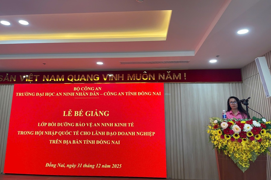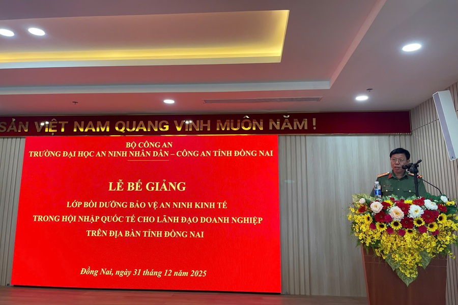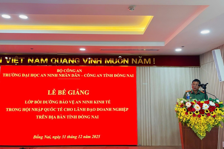 Sáng ngày 31/12/2025, Trường Đại học An ninh nhân dân đã phối hợp với Công an tỉnh Đồng Nai tổ chức lễ bế giảng lớp bồi dưỡng Bảo vệ an ninh kinh tế trong hội nhập quốc tế cho lãnh đạo doanh nghiệp trên địa bàn tỉnh Đồng Nai.