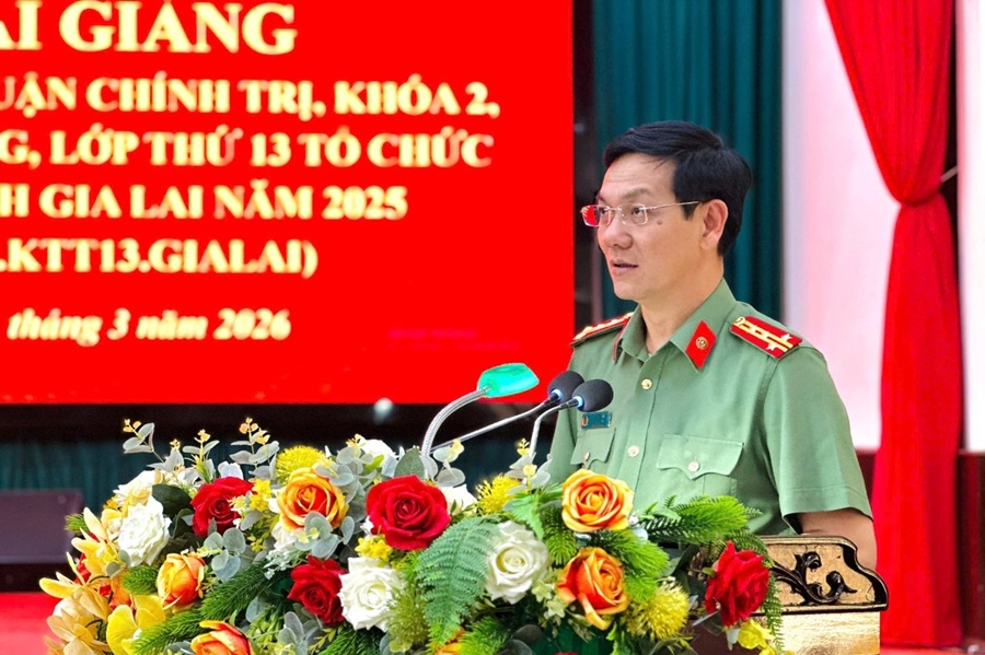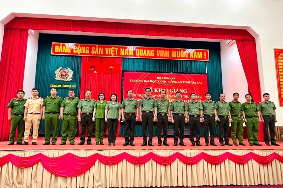Sáng ngày 30/3/2026, Trường Đại học An ninh nhân dân phối hợp với Công an tỉnh Gia Lai tổ chức Lễ Khai giảng lớp Trung cấp lý luận chính trị, khóa 2, hệ không tập trung, lớp thứ 13 tổ chức tại Công an tỉnh Gia Lai (T04.TCCT.K2.KTT13.Gia Lai). Đồng chủ trì buổi Lễ có đồng chí TS, Thiếu tướng Trần Văn Tuấn - Bí thư Đảng ủy, Hiệu trưởng Trường Đại học An ninh nhân dân; đồng chí Đại tá Ngô Cự Vinh - Phó Bí thư Đảng ủy, Phó Giám đốc Công an tỉnh Gia Lai cùng sự tham dự của đại diện lãnh đạo các đơn vị thuộc Nhà trường, Công an tỉnh Gia Lai và toàn thể 71 học viên khóa học.