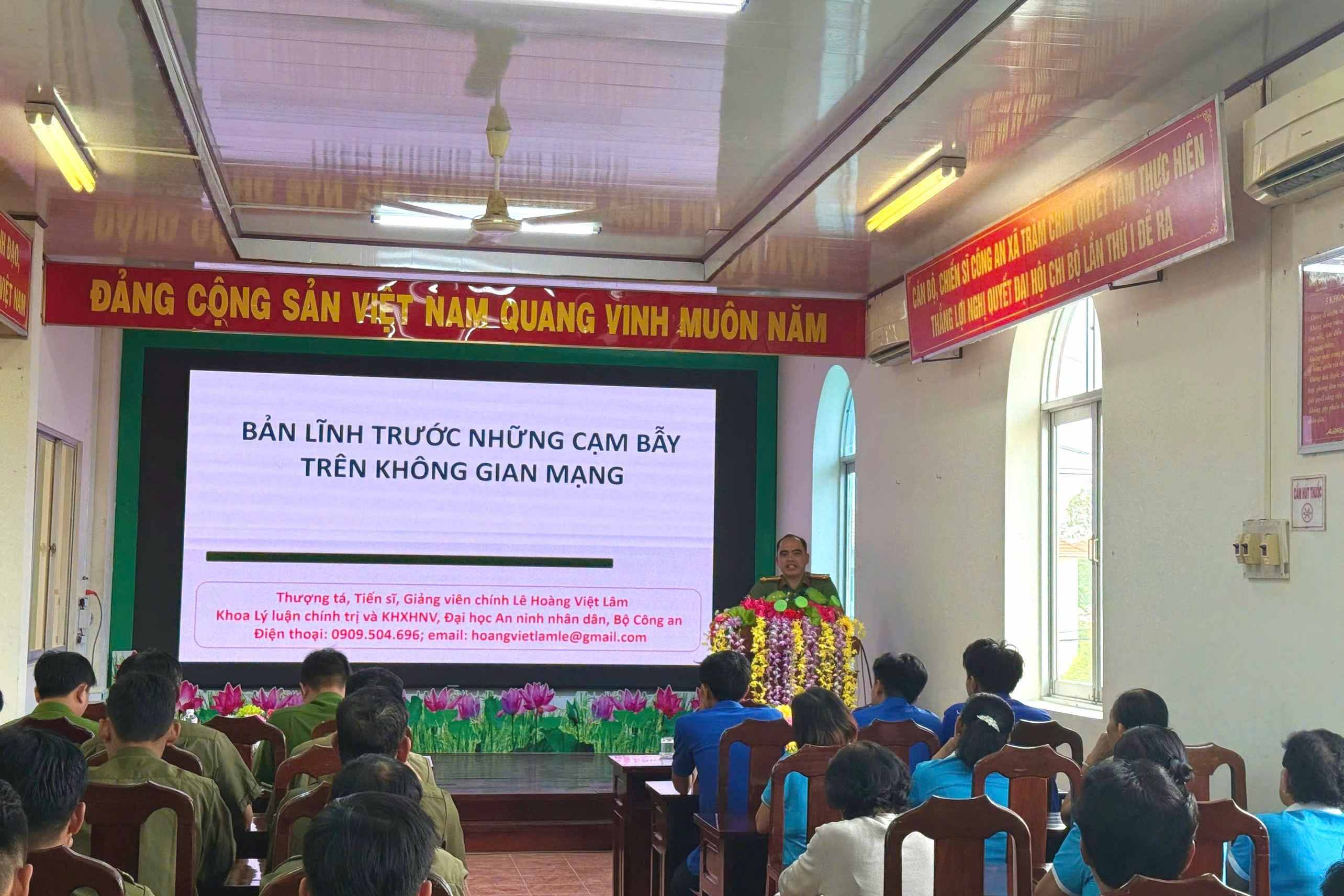 Trong khuôn khổ chương trình hoạt động thực tế của học viên khóa D32 tại tỉnh Đồng Tháp, ngày 27/10/2025, TS, Thượng tá Lê Hoàng Việt Lâm, giảng viên chính - Khoa Lý luận chính trị và Khoa học xã hội nhân văn, Trường Đại học An ninh nhân dân đã có buổi báo cáo chuyên đề “Kỹ năng an toàn trên không gian mạng” tại trường trung học phổ thông Tràm Chim và Công an xã Tràm Chim, tỉnh Đồng Tháp.