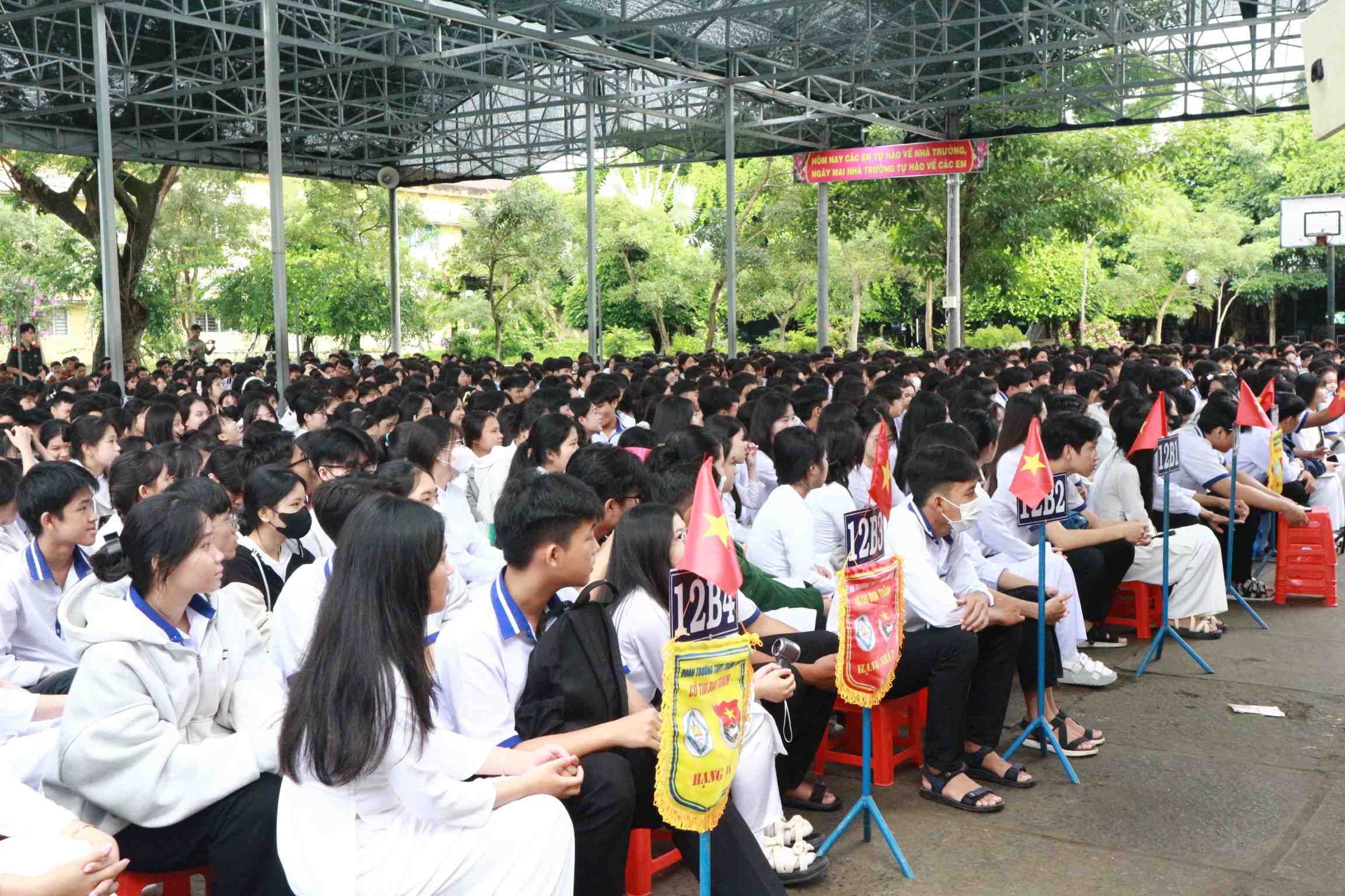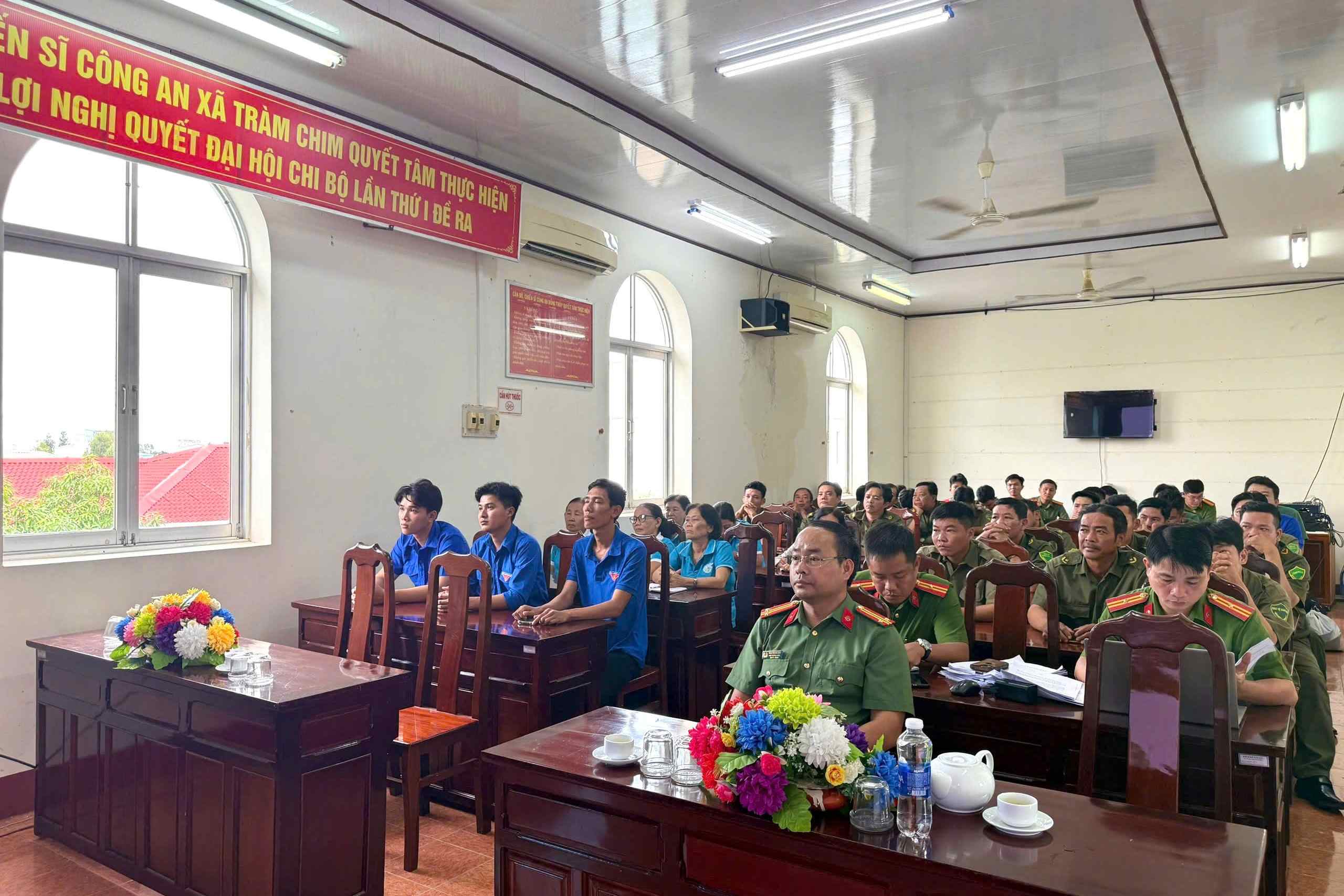 Buổi báo cáo có sự tham dự của hơn 1.600 học sinh và thầy cô giáo Trường Trung học phổ thông Tràm Chim, hơn 100 học viên khóa D32 đang tham gia hoạt động thực tế tại địa phương, cùng đại diện lực lượng tham gia bảo vệ an ninh, trật tự ở cơ sở, Hội Phụ nữ và Đoàn Thanh niên xã Tràm Chim.