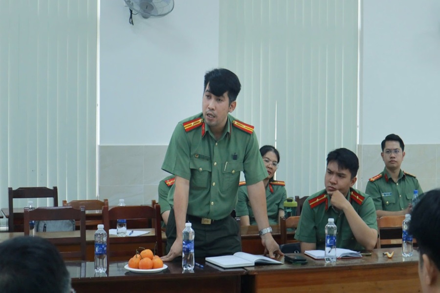 Báo cáo viên chính của Tọa đàm là TS, Thượng tá Lê Thị Nguyệt và ThS, Trung tá Hồ Thị Bích Thảo - những giảng viên có nhiều kinh nghiệm, công trình nghiên cứu liên quan đến chủ đề tọa đàm được công bố trên các tạp chí uy tín trong nước và quốc tế. Hai báo cáo viên đã trình bày các nội dung cốt lõi, trọng tâm, bao gồm: lý thuyết và một số công nghệ AI hỗ trợ biên soạn tiếng Anh chuyên ngành (EOP); quy trình thiết kế tài liệu EOP tích hợp công nghệ AI phù hợp với lực lượng CAND và kinh nghiệm và định hướng biên soạn tài liệu EOP tại Khoa Ngoại ngữ - Tin học.
