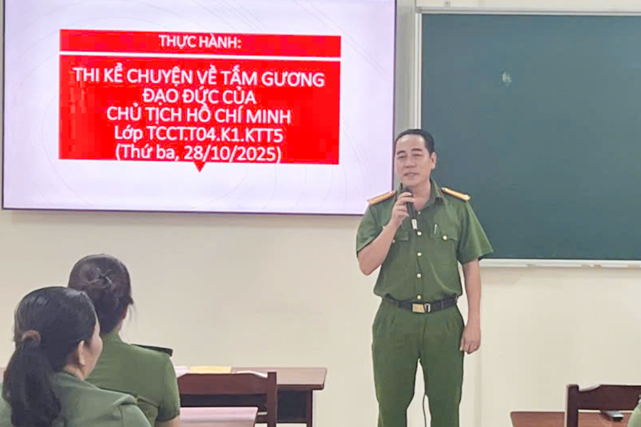 Nhằm triển khai Nghị quyết số 71-NQ/TW ngày 22/8/2025 của Bộ Chính trị “Về đột phá phát triển giáo dục và đào tạo”; thực hiện Kế hoạch số 48/KH-K1 ngày 25/12/2024 của Khoa Lý luận chính trị và Khoa học xã hội nhân văn (Khoa K1) về “Tổ chức giảng dạy lớp T04.TCCT.K1.KTT5”; sáng thứ ba, ngày 28/10/2025, Khoa K1 đã tổ chức thực hành học phần “Nội dung cơ bản của tư tưởng Hồ Chí Minh” tại lớp T04.TCCT.K1.KTT5 bằng hình thức thi kể chuyện về tấm gương đạo đức của Hồ Chí Minh.