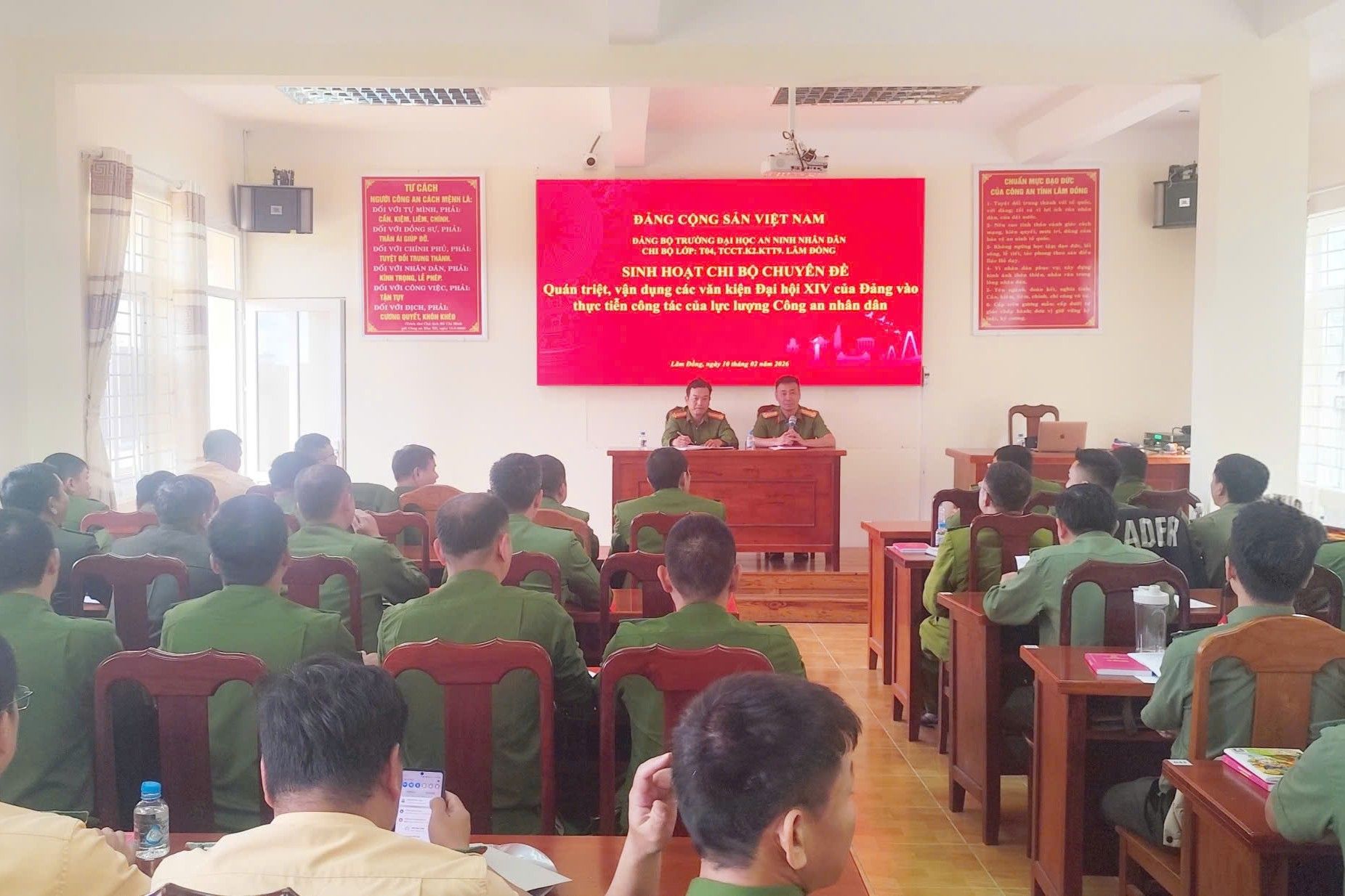 Thực hiện Hướng dẫn số 72-HD/ĐUCATW ngày 03/6/2024 của Đảng ủy Công an Trung ương, đặc biệt là cập nhật những tiêu chí mới nhất tại Hướng dẫn số 42-HD/BTCTW ngày 28/10/2025 của Ban Tổ chức Trung ương và nội dung các văn kiện của Đại hội XIV, Chi bộ lớp đã lựa chọn chủ đề: “Quán triệt, vận dụng các văn kiện Đại hội XIV của Đảng vào thực tiễn công tác của lực lượng Công an nhân dân”.