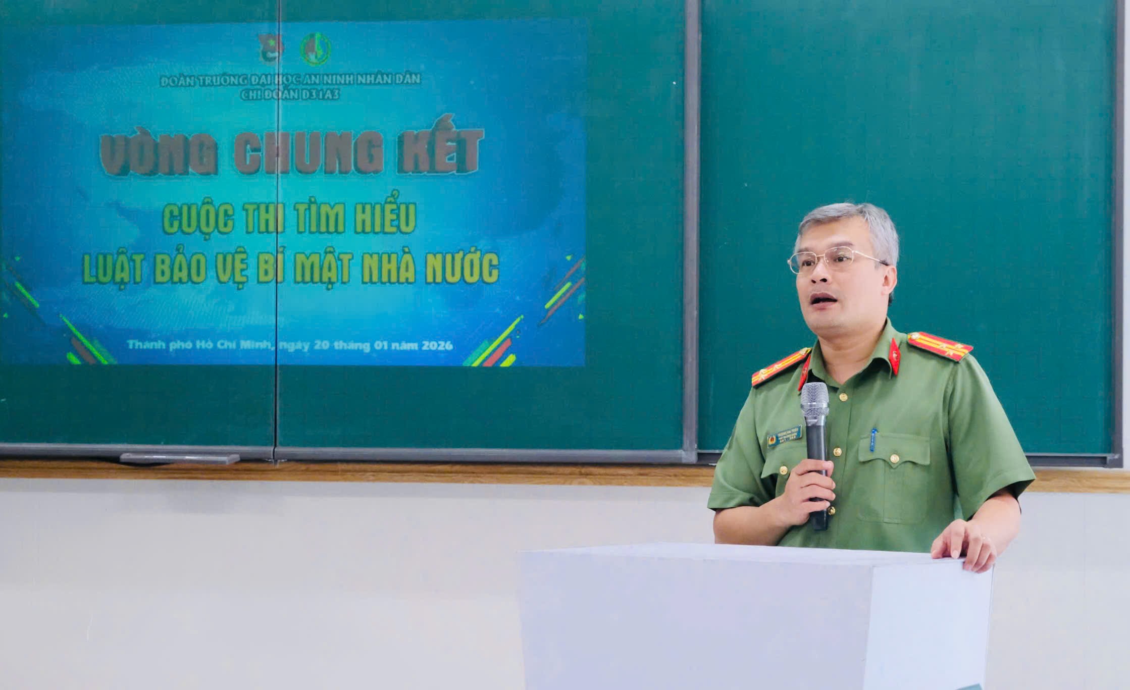 Trong không khí toàn Đảng, toàn dân hướng đến Đại hội đại biểu toàn quốc lần thứ XIV của Đảng và tiếp tục triển khai thực hiện Nghị quyết số 57-NQ/TW ngày 22/12/2024 của Bộ Chính trị về đột phá phát triển khoa học, công nghệ, đổi mới sáng tạo và chuyển đổi số quốc gia tại Trường Đại học An ninh nhân dân, đồng thời thực hiện chương trình công tác năm học 2025 - 2026, chiều ngày 20/01/2026, Khoa An ninh chính trị nội bộ tổ chức cuộc thi Tìm hiểu Luật Bảo vệ bí mật nhà nước cho học viên Trung đội D31A3. Tham dự, chỉ đạo có đồng chí TS, Thượng tá Trương Hải Triều - Phó Trưởng khoa An ninh chính trị nội bộ cùng với sự hiện diện của Lãnh đạo, giảng viên trong Khoa An ninh chính trị nội bộ, đại diện Ban Chấp hành Đoàn trường, chủ nhiệm Trung đội và toàn thể học viên Trung đội D31A3.