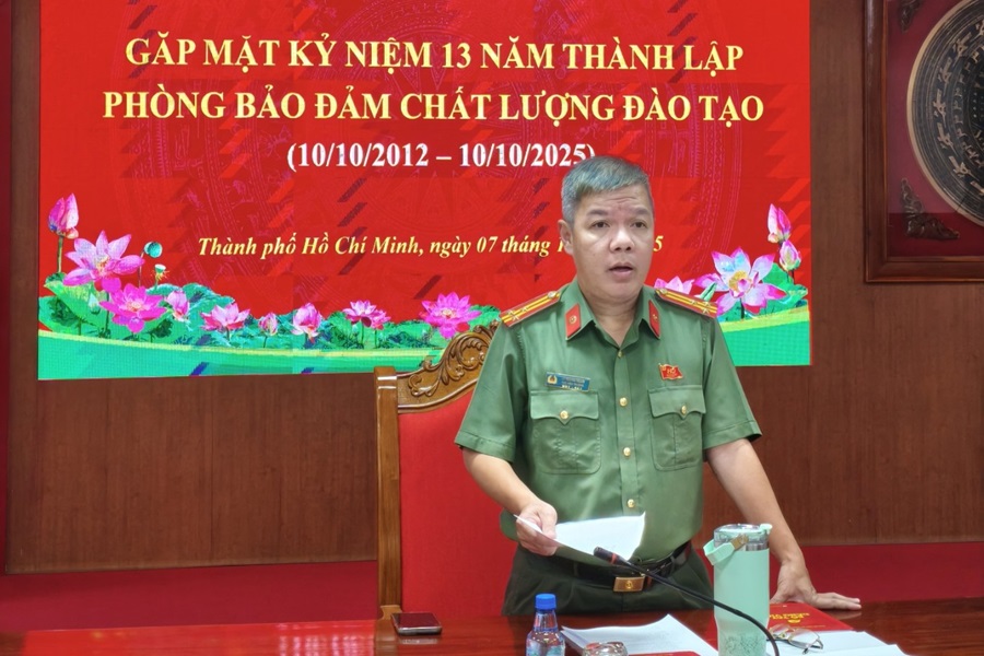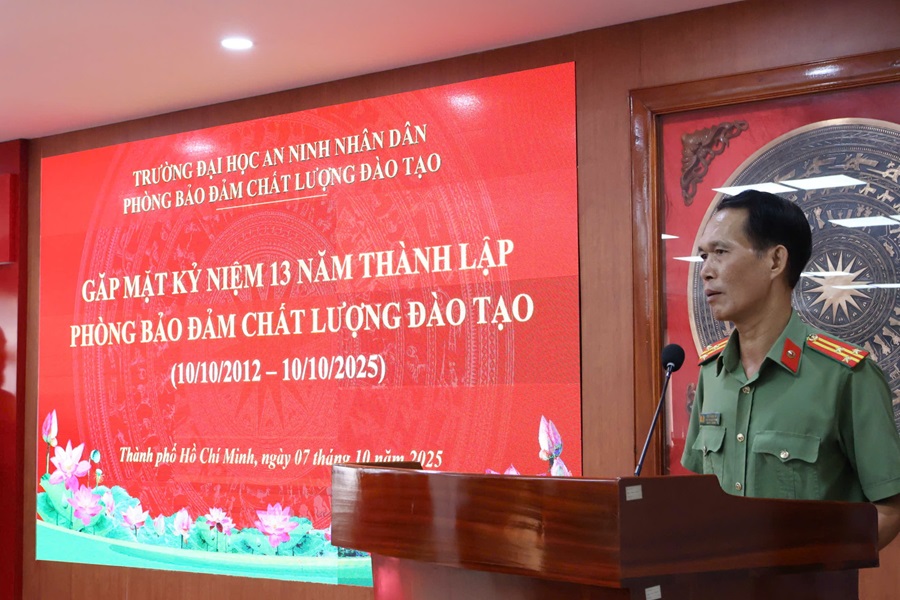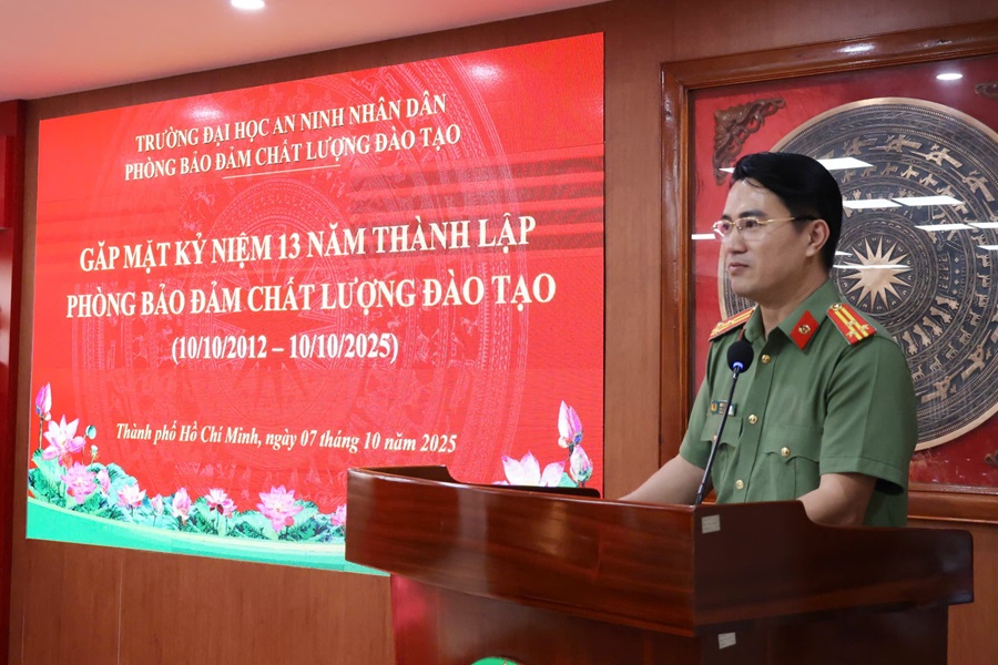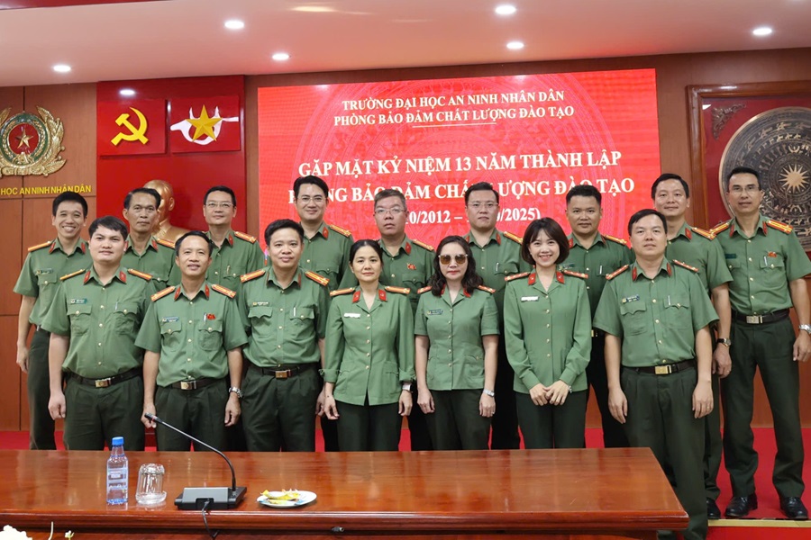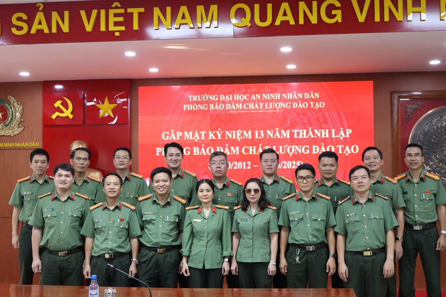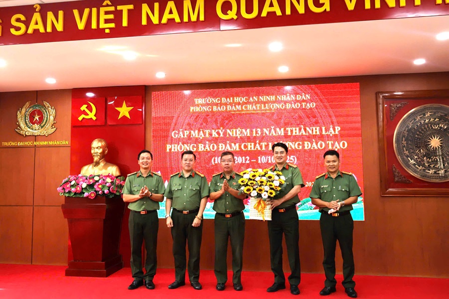 Chiều ngày 07 tháng 10 năm 2025, Phòng Bảo đảm chất lượng đào tạo (P4) - Trường Đại học An ninh nhân dân trang trọng tổ chức kỷ niệm 13 năm thành lập Phòng (10/10/2012 – 10/10/2025). Buổi lễ diễn ra trong không khí gần gũi, ấm cúng và tràn đầy ý nghĩa với sự tham dự của đồng chí Lê Hoàng Ngân, Phó Hiệu trưởng, Ủy viên Ban Thường vụ Đảng ủy phụ trách đơn vị, các đồng chí nguyên lãnh đạo Phòng P4 cùng toàn thể lãnh đạo, cán bộ Phòng P4 qua các thời kỳ.