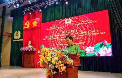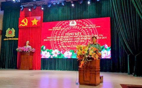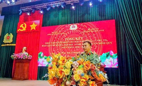 Phát biểu tại Lễ tổng kết, đồng chí Thượng tá Nguyễn Thanh Tùng - Phó trưởng Phòng Tổ chức cán bộ Công an tỉnh An Giang ghi nhận và đánh giá cao tinh thần trách nhiệm, thái độ nghiêm túc, cầu thị của đoàn học viên trong suốt quá trình thực tập; đồng thời biểu dương những kết quả, thành tích nổi bật mà học viên đã đạt được, góp phần hỗ trợ hiệu quả cho công tác chuyên môn của các đơn vị, địa phương trong Công an tỉnh An Giang.