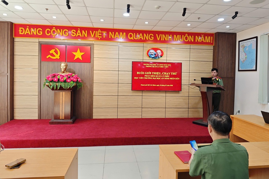 Thực hiện chủ trương của Đảng, Nhà nước về đẩy mạnh ứng dụng khoa học, công nghệ, đổi mới sáng tạo và chuyển đổi số, đặc biệt là Nghị quyết số 57-NQ/TW ngày 22/12/2024 của Bộ Chính trị về đột phá phát triển khoa học, công nghệ, đổi mới sáng tạo và chuyển đổi số quốc gia, nhằm từng bước hiện đại hóa công tác quản lý, điều hành trong các cơ sở giáo dục, Phòng Quản lý học viên Trường Đại học An ninh nhân dân đã tổ chức buổi giới thiệu, chạy thử phần mềm “Quản lý phép học viên Trường Đại học An ninh nhân dân”. Buổi làm việc do Thượng tá Trần Hữu Sơn - Phó Trưởng phòng Quản lý học viên chủ trì, cùng sự tham dự của toàn thể cán bộ Phòng Quản lý học viên và nhóm tác giả sáng kiến phần mềm gồm học viên Trần Quý Khang, học viên Lê Tiến Đạt - Trung đội D31A3.