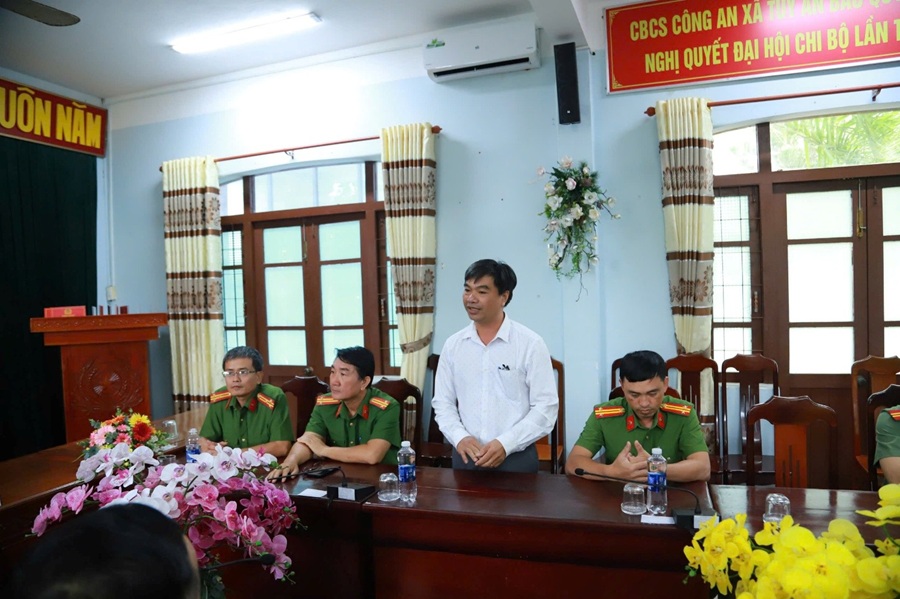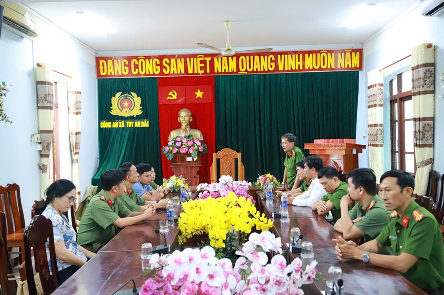 Tại buổi làm việc, thay mặt cấp ủy, chính quyền địa phương, đồng chí Phan Hoàng Thám - Phó Bí thư Đảng ủy xã Tuy An Bắc đã báo cáo nhanh về tình hình mưa lũ, công tác khắc phục và sự chung tay của các lực lượng trên địa bàn. Đồng chí bày tỏ lòng cảm ơn sâu sắc đối với sự hỗ trợ kịp thời, khẩn trương, đầy trách nhiệm của Đoàn công tác Trường Đại học An ninh nhân dân trong những ngày qua. Bên cạnh đó, đồng chí Thượng tá Phạm Quang Điểm, Trưởng phòng Phòng Quản lý học viên, Trưởng đoàn công tác chi viện cũng đã báo cáo nhanh các kết quả của Đoàn công tác trong những ngày qua và hứa quyết tâm khắc phục khó khăn, nỗ lực cao nhất để giúp nhân dân địa bàn sớm ổn định cuộc sống.