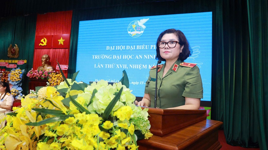 Phát biểu tại Đại hội, Thiếu tướng Ngô Hoài Thu, Phó Cục trưởng Cục Công tác Chính trị, Trưởng Ban phụ nữ CAND đã ghi nhận và đánh giá cao những kết quả mà Hội phụ nữ Trường Đại học ANND đã đạt được trong giai đoạn 2021-2025 với nhiều dấu ấn tiêu biểu góp phần thực hiện nhiệm vụ chính trị của Nhà trường, của Hội Phụ nữ Bộ Công an, đặc biệt trong công tác chuyển đổi số và phát động phong trào tự rèn luyện tiếng Anh. Để công tác Hội phát triển bền vững, tiếp tục ghi dấu ấn trong giai đoạn mới, Thiếu tướng Ngô Hoài Thu đề nghị sau đại hội, các đồng chí trong Ban chấp hành Hội phụ nữ Trường Đại học ANND nhiệm kỳ mới tập trung xây dựng chương trình hành động toàn khóa, thực hiện các mục tiêu, chỉ tiêu và khâu đột phá đã đề ra. Quan tâm, đề xuất các giải pháp nâng cao chất lượng đội ngũ nữ giảng viên, phát động phong trào nghiên cứu khoa học, chăm lo đời sống hội viên nữ.... Nghiên cứu, đề xuất triển khai giải thưởng Phụ nữ An ninh nhân dân tiêu biểu, nhằm tôn vinh, động viên sự cống hiến của cán bộ nữ, đẩy mạnh hơn nữa ứng dụng công nghệ thông tin, chuyển đổi số, nhất là nội dung “Bình dân học vụ số”.