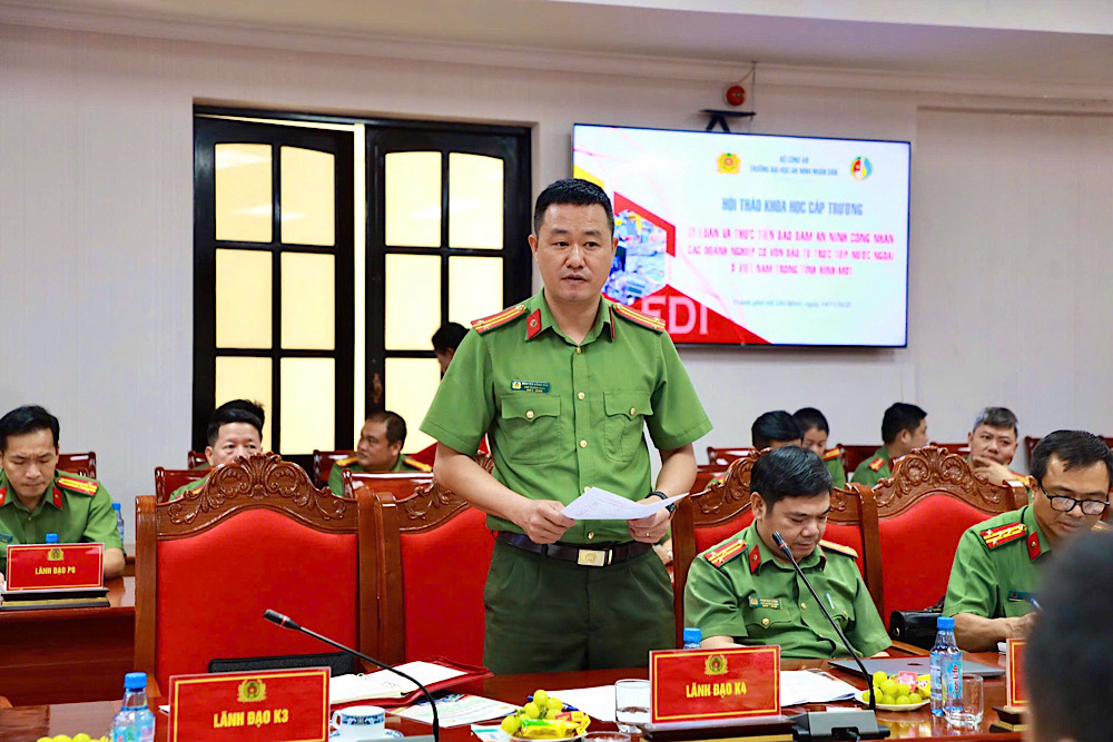 Nhìn chung, các ý kiến tham dự đều đánh giá cao ý nghĩa và hiệu quả của Hội thảo khoa học. Những tham luận trình bày đã góp phần làm sáng tỏ hơn nhận thức về an ninh công nhân, đặc biệt trong các doanh nghiệp có vốn đầu tư trực tiếp nước ngoài. Hội thảo cũng phân tích rõ các yếu tố tác động, chỉ ra những hạn chế còn tồn tại trong công tác bảo đảm an ninh công nhân, đồng thời đề xuất nhiều kiến nghị và giải pháp thiết thực. Đây là những gợi mở quan trọng nhằm tăng cường bảo đảm an ninh công nhân tại các doanh nghiệp có vốn đầu tư trực tiếp nước ngoài ở Việt Nam trong thời gian tới.