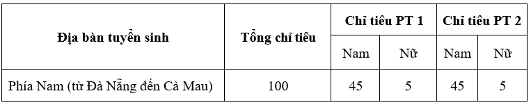 1. Khu vực tuyển sinh: Phía Nam (Từ Đà Nẵng đến Cà Mau).