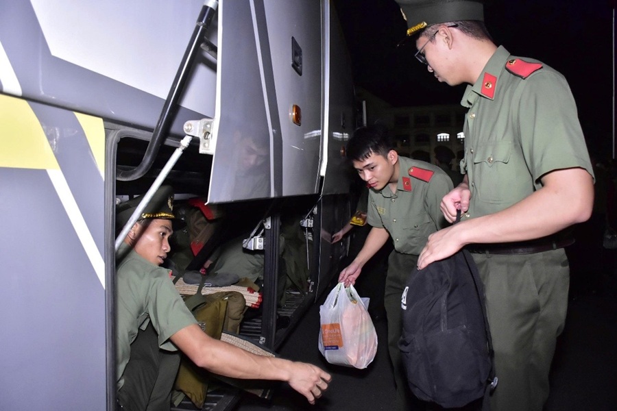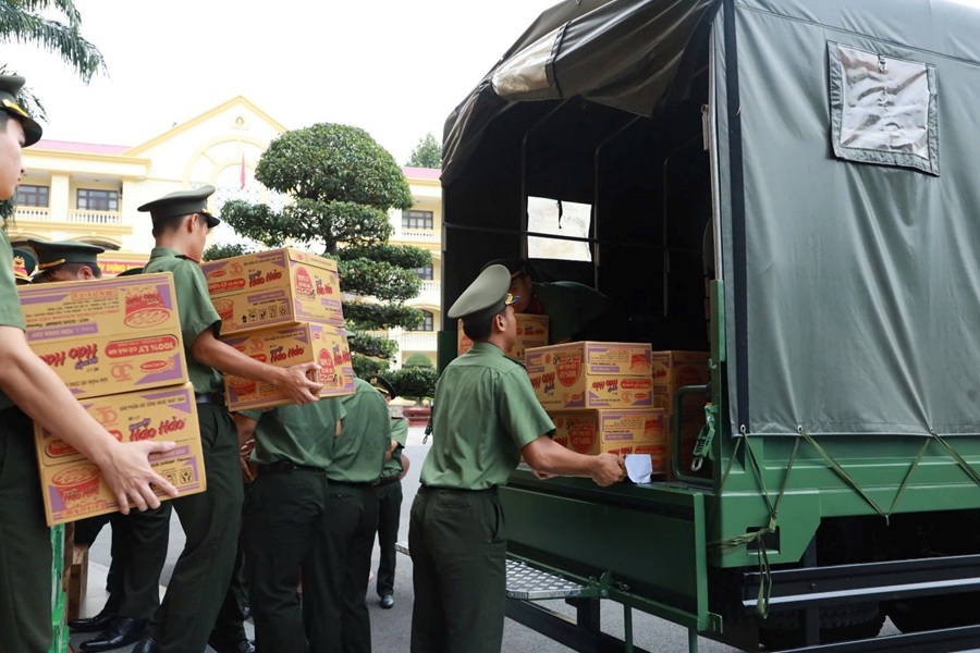 Sau Lễ xuất quân, Đoàn công tác của Trường Đại học An ninh nhân dân khẩn trương xuất phát ngay trong đêm để kịp thời đến với đồng bào vùng lũ nhanh chóng hỗ trợ, khắc phục khó khăn cho nhân dân.