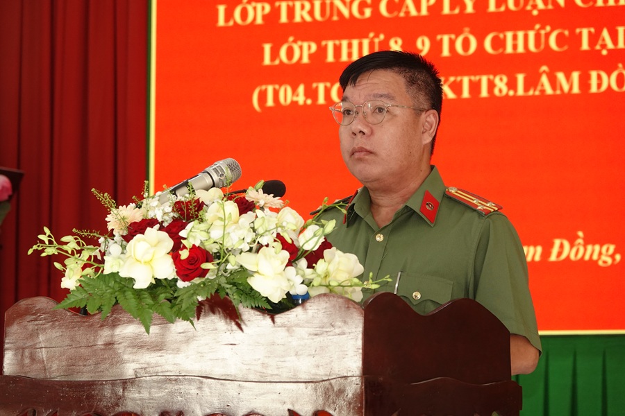 Phát biểu tại Lễ Khai giảng, đồng chí TS, Thượng tá Lê Hoàng Ngân – Ủy viên Ban Thường vụ Đảng ủy, Phó Hiệu trưởng chúc mừng các học viên tham gia lớp học và nhấn mạnh tầm quan trọng của công tác đào tạo lý luận chính trị trong giai đoạn hiện nay, nhất là đối với cán bộ, chiến sĩ lực lượng Công an nhân dân, nhằm nâng cao bản lĩnh chính trị, lập trường tư tưởng, đáp ứng yêu cầu, nhiệm vụ bảo đảm an ninh, trật tự trong tình hình mới. Đồng chí Phó Hiệu trưởng đề nghị học viên lớp học chấp hành nghiêm kỷ luật, phát huy tinh thần tự giác học tập, kết hợp lý luận với thực tiễn công tác để vận dụng hiệu quả sau khóa học.