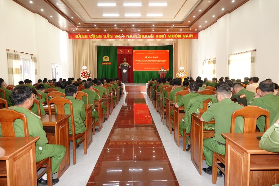 Trường Đại học An ninh nhân dân phối hợp với Công an tỉnh Lâm Đồng tổ chức Lễ Khai giảng lớp Trung cấp lý luận chính trị, khóa 2, hệ không tập trung, lớp thứ 8,9 tổ chức tại Công an tỉnh Lâm Đồng