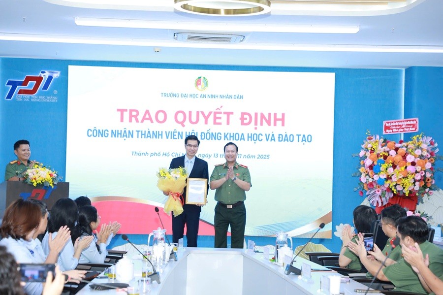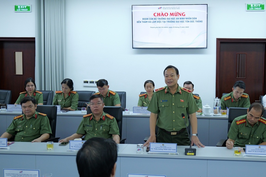 Nhằm tăng cường mối quan hệ hợp tác, giao lưu và mở rộng cơ hội trao đổi kinh nghiệm trong lĩnh vực giáo dục và đào tạo, ngày 13/11/2025, Trường Đại học An ninh nhân dân đã cử đoàn cán bộ do TS. Thiếu tướng Trần Văn Tuấn - Bí thư Đảng ủy, Hiệu trưởng Nhà trường làm trưởng đoàn, cùng các đồng chí trong Đảng ủy, Ban Giám hiệu, lãnh đạo các khoa, phòng và trung tâm đến tham quan và trao đổi kinh nghiệm tại Trường Đại học Tôn Đức Thắng.