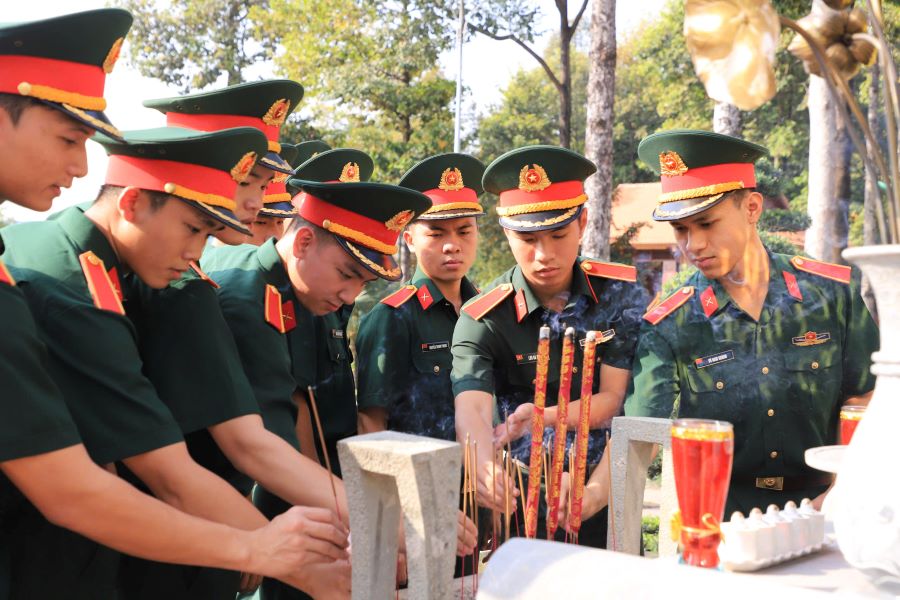 Cán bộ, giảng viên, học viên Nhà trường dâng hoa, dâng hương Chủ tịch Hồ Chí Minh.