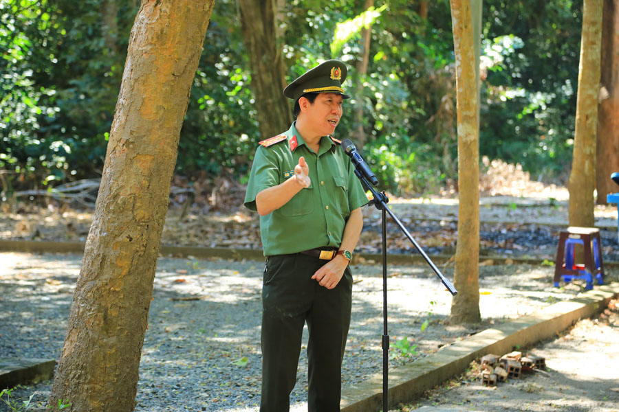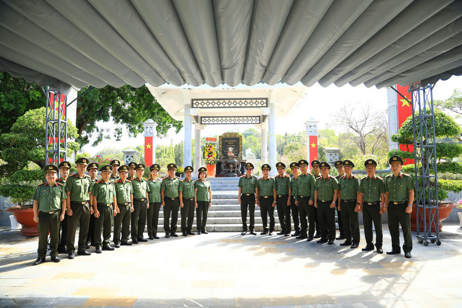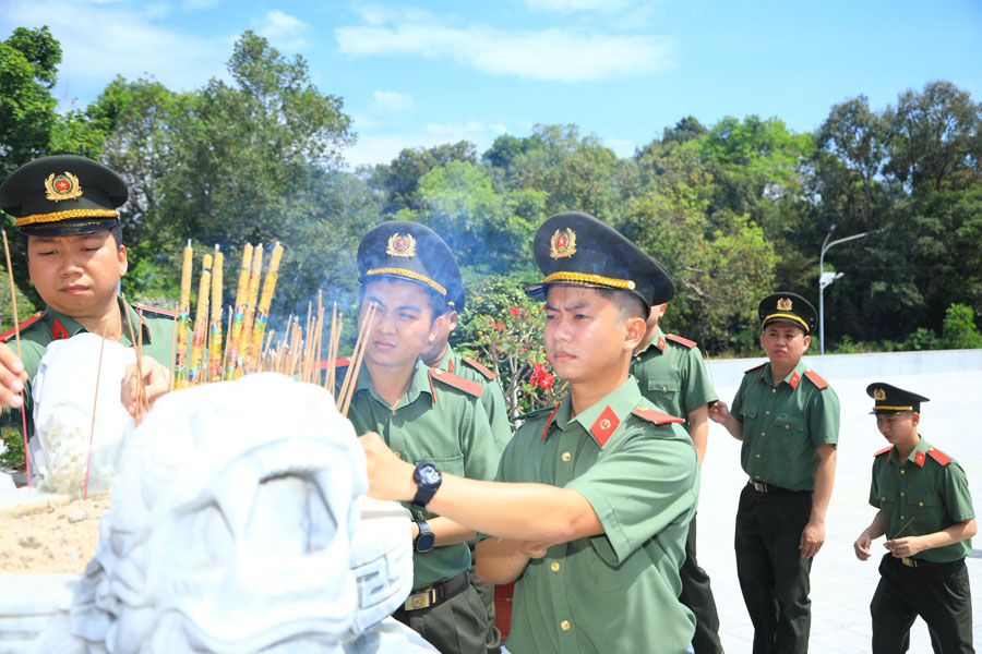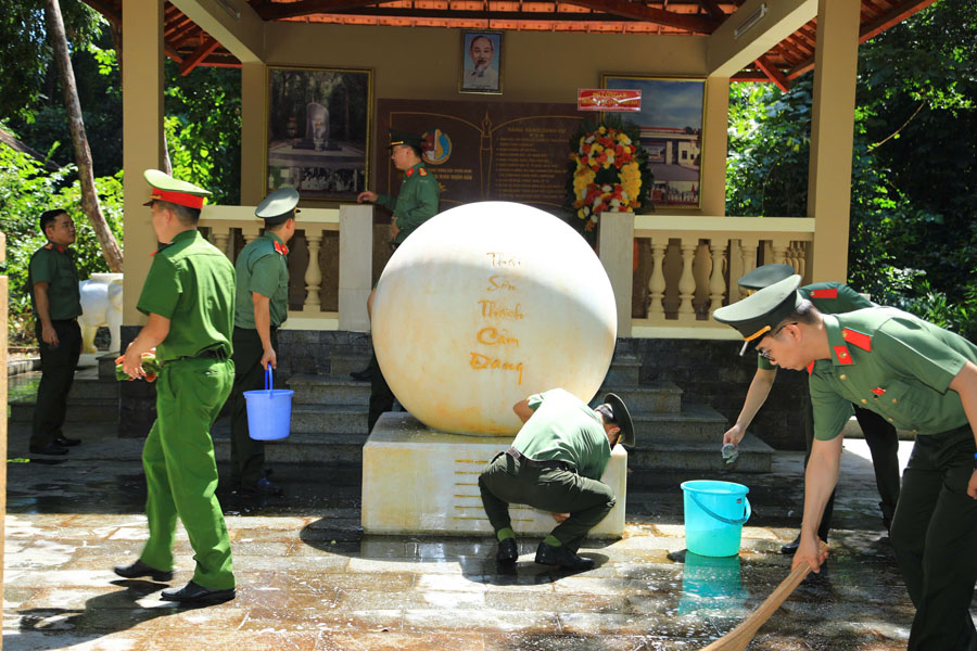 Đặc biệt, đoàn đã đến thăm, dâng hương, dâng hoa và tổ chức chỉnh trang, chăm sóc 02 khu di tích của Nhà trường là Bia Truyền thống và Nhà lưu niệm Trường An ninh Trung ương Cục miền Nam - Trường Đại học An ninh nhân dân.