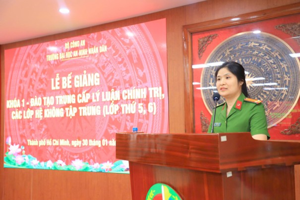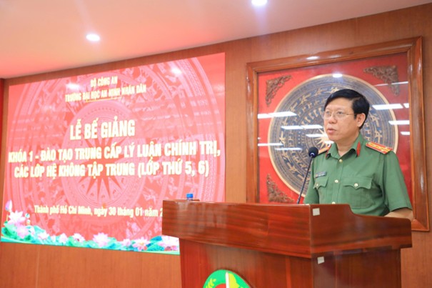 Đồng chí Phó Hiệu trưởng nhấn mạnh, các khóa học diễn ra trong giai đoạn toàn Ngành tích cực thực hiện các Nghị quyết của Bộ Chính trị về đổi mới sáng tạo và phát triển giáo dục. Đồng thời, đồng chí nhấn mạnh quan điểm của Tổng Bí thư Tô Lâm về việc xây dựng lực lượng Công an nhân dân cách mạng là vấn đề quan trọng hàng đầu.