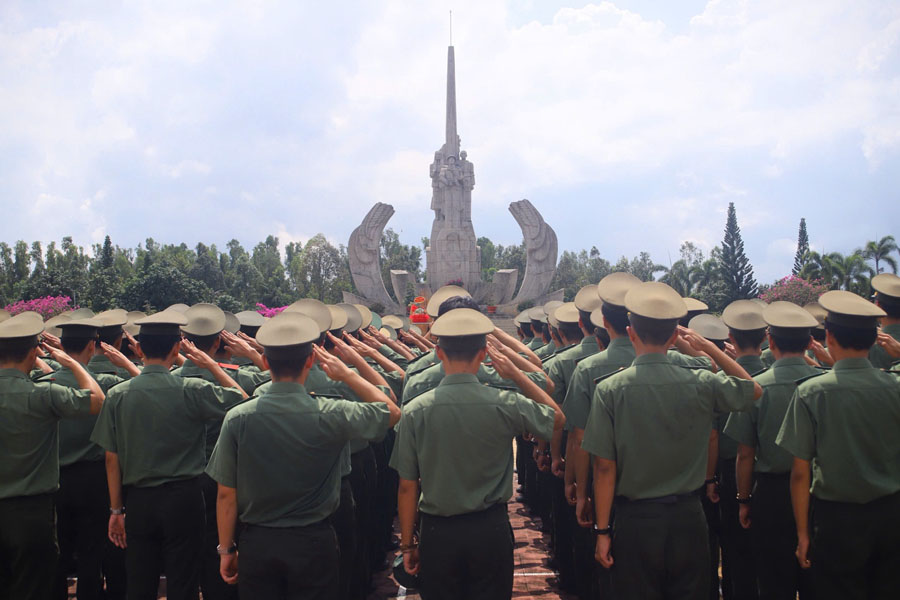Đoàn công tác dâng hoa tưởng niệm tại Nghĩa trang liệt sĩ biên giới Tây Nam