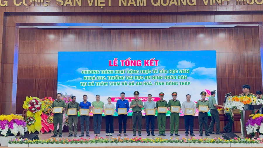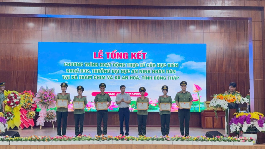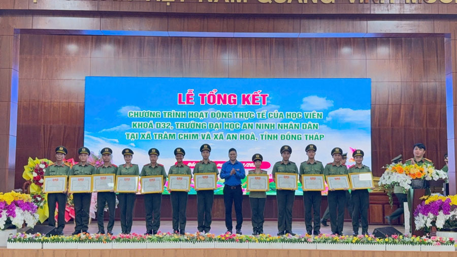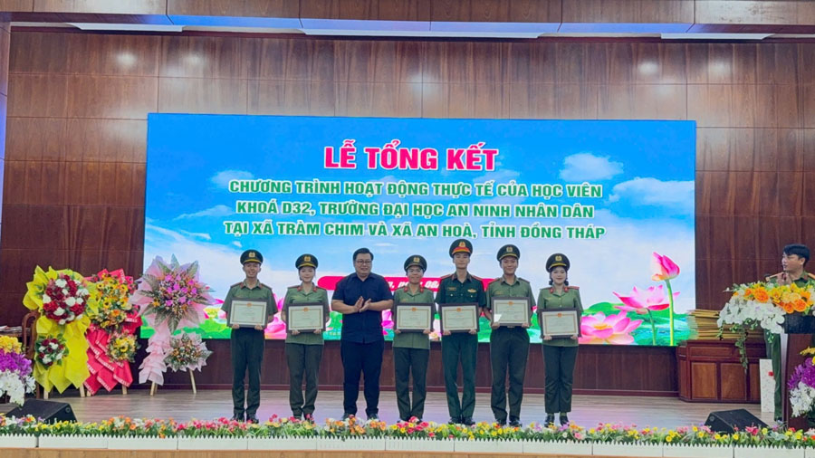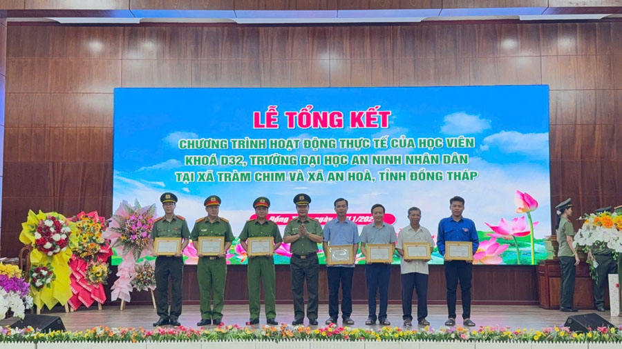 Ghi nhận những thành tích của đợt thực tế, Hiệu trưởng Trường Đại học An ninh nhân dân tặng giấy khen cho 20 tập thể, cá nhân; 13 tập thể, cá nhân được Giám đốc Công an tỉnh Đồng Tháp tặng giấy khen; 12 tập thể, cá nhân được Ban Thường vụ Tỉnh đoàn Đồng Tháp tặng giấy khen và 294 tập thể, cá nhân được Chủ tịch Ủy ban nhân dân xã An Hòa và xã Tràm Chim tặng giấy khen./.