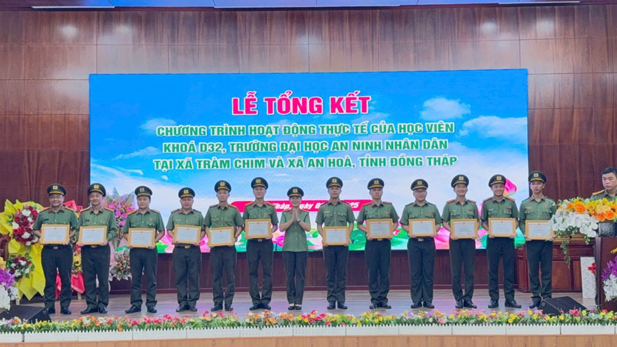 Trường Đại học An ninh nhân dân tổ chức tổng kết hoạt động thực tế cho học viên khoá D32 tại tỉnh Đồng Tháp