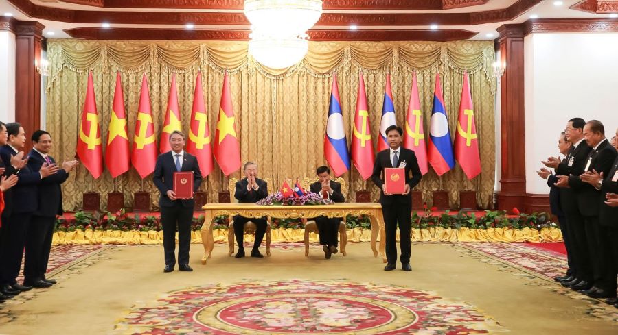 Cũng trong sáng 05/02,Trong khuôn khổ chuyến thăm cấp Nhà nước tới Lào, tại thủ đô Viêng Chăn, Tổng Bí thư Tô Lâm và Tổng Bí thư, Chủ tịch nước Lào Thongloun Sisoulith đã chứng kiến Lễ trao các văn kiện hợp tác nhằm tiếp tục thắt chặt quan hệ hợp tác, góp phần củng cố và tăng cường hơn nữa mối quan hệ hữu nghị vĩ đại, đoàn kết đặc biệt, hợp tác toàn diện và gắn kết chiến lược giữa hai nước Việt Nam và Lào.