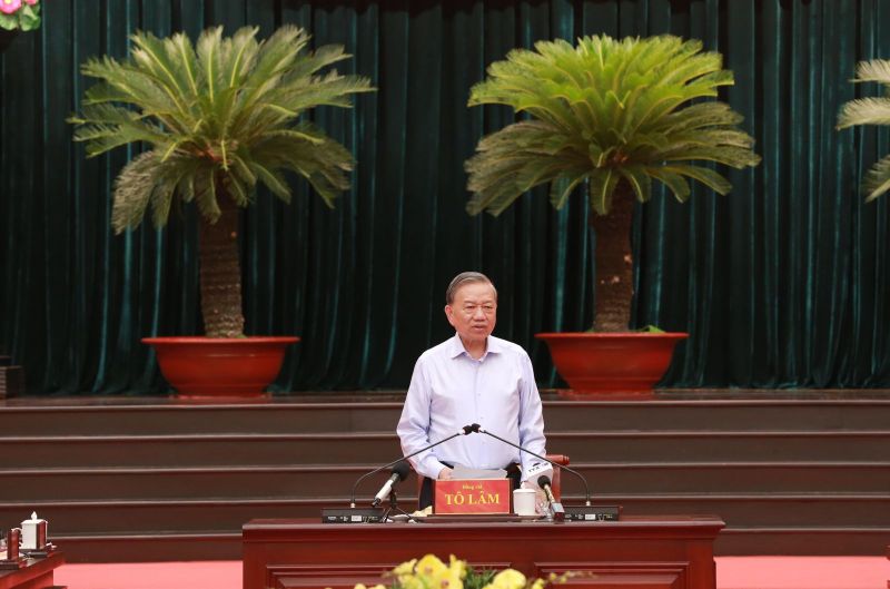 Chiều 27/5, đồng chí Tổng Bí thư, Chủ tịch nước Tô Lâm và Đoàn công tác Trung ương đã làm việc với Ban Thường vụ Thành ủy Thành phố Hồ Chí Minh về chuẩn bị Kỷ niệm 50 năm Thành phố mang tên Chủ tịch Hồ Chí Minh; tình hình triển khai thực hiện Nghị quyết Đại hội XIV của Đảng; quy hoạch phát triển Thành phố Hồ Chí Minh; tình hình phát triển kinh tế - xã hội 4 tháng đầu năm 2026 và Kế hoạch tăng trưởng kinh tế “2 con số”, công tác bảo đảm an sinh xã hội; chuẩn bị sơ kết thực hiện chính quyền địa phương 2 cấp; những khó khăn, vướng mắc hiện nay của Thành phố và kiến nghị, đề xuất.