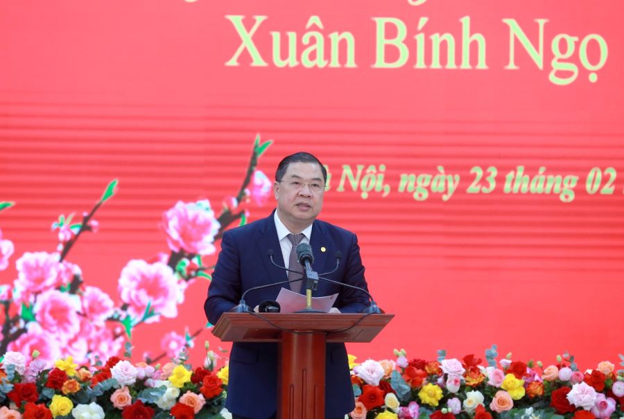 Nhân dịp đầu Xuân năm mới Bính Ngọ 2026, sáng 23/2, tại Hà Nội, Văn phòng Trung ương Đảng tổ chức gặp mặt, chúc Tết cán bộ, công chức, viên chức, người lao động trong cơ quan. Tổng Bí thư Tô Lâm dự và phát biểu.
