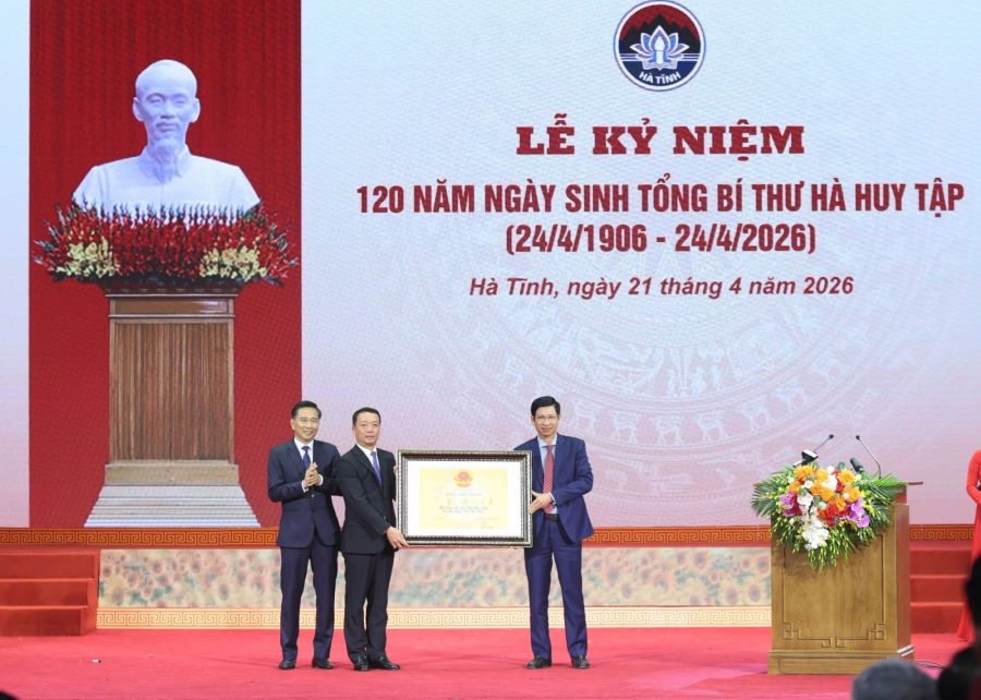 Sáng 21/4/2026, tại Hà Tĩnh, Tỉnh ủy, Hội đồng nhân dân, Ủy ban Nhân dân, Ủy ban MTTQ tỉnh Hà Tĩnh long trọng tổ chức Lễ kỷ niệm 120 năm ngày sinh đồng chí Tổng Bí thư Hà Huy Tập (24/4/1906 - 24/4/2026). Tổng Bí thư, Chủ tịch nước Tô Lâm và các đồng chí Lãnh đạo Đảng, Nhà nước dự buổi Lễ.