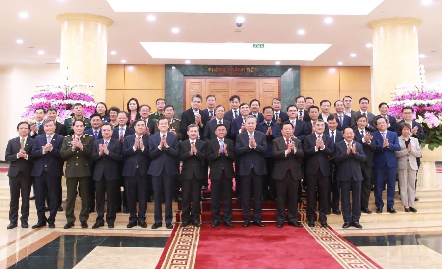Tổng Bí thư Tô Lâm và các đồng chí Lãnh đạo chụp ảnh lưu niệm cùng Hội đồng Lý luận Trung ương.