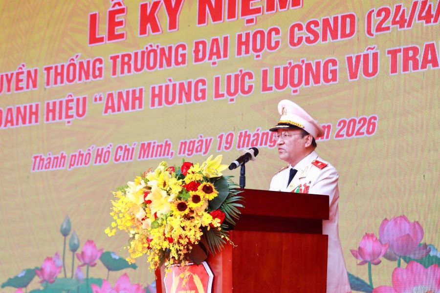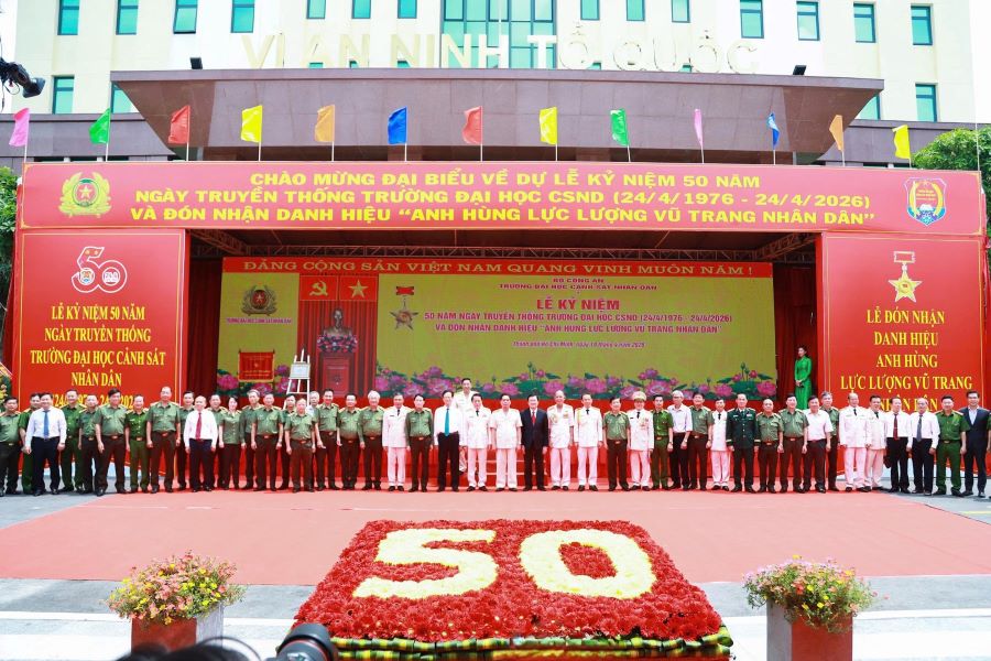 Sáng ngày 19/4/2026, Trường Đại học Cảnh sát nhân dân (CSND) long trọng tổ chức Lễ kỷ niệm 50 năm Ngày truyền thống (24/4/1976 - 24/4/2026) và đón nhận danh hiệu Danh hiệu Anh hùng lực lượng vũ trang nhân dân.