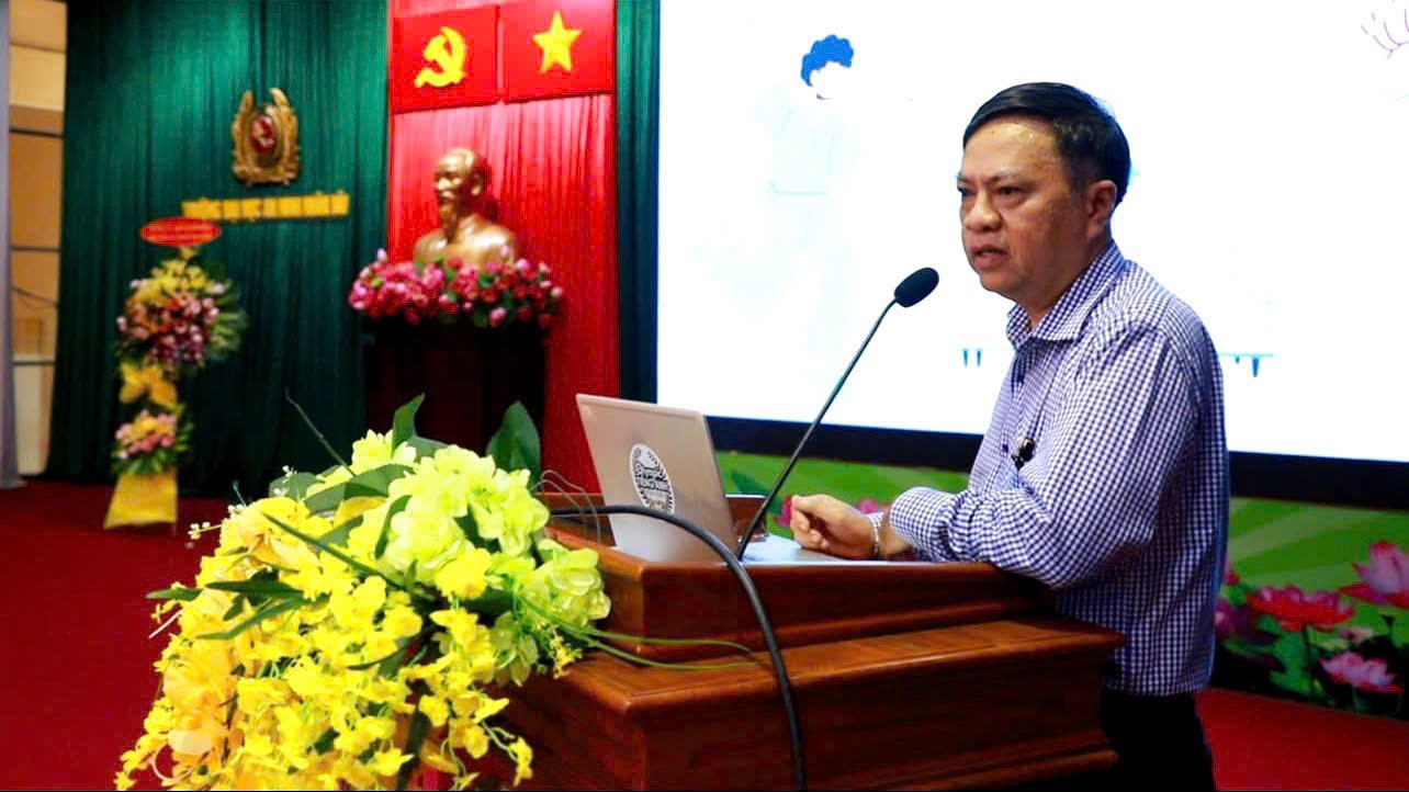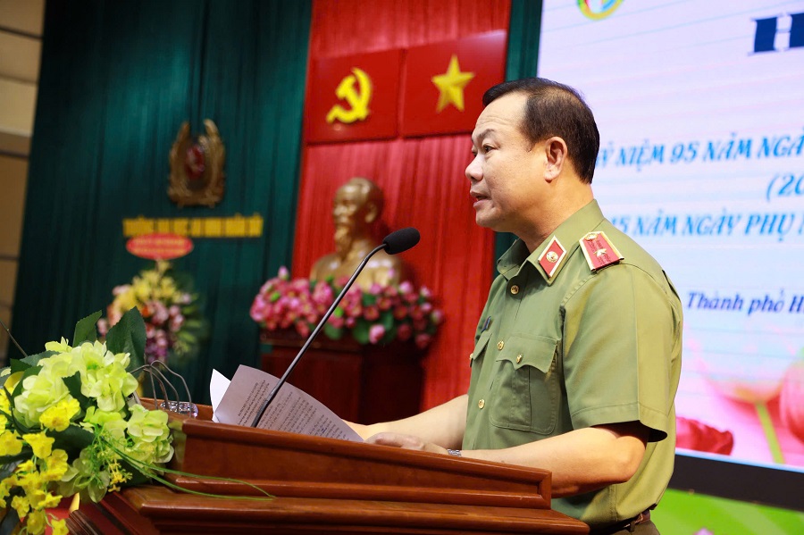 Thay mặt Đảng ủy, Ban Giám hiệu, Thiếu tướng Trần Văn Tuấn - Bí thư Đảng ủy, Hiệu trưởng phát biểu chúc mừng, ghi nhận và biểu dương những kết quả nổi bật của Hội Phụ nữ Trường trong thời gian qua. Đồng chí nhấn mạnh, các cấp Hội đã thực hiện tốt công tác tuyên truyền, giáo dục chính trị tư tưởng, tổ chức nhiều hoạt động thiết thực, sáng tạo, góp phần xây dựng hình ảnh đẹp của người nữ chiến sĩ Công an trong lòng nhân dân. Thiếu tướng Trần Văn Tuấn gửi lời chúc mừng tốt đẹp nhất đến toàn thể cán bộ, hội viên nhân dịp kỷ niệm Ngày Phụ nữ Việt Nam, đồng thời bày tỏ tin tưởng Hội Phụ nữ Trường sẽ tiếp tục phát huy tinh thần đoàn kết, trí tuệ, chủ động, sáng tạo, hoàn thành xuất sắc mọi nhiệm vụ được giao.