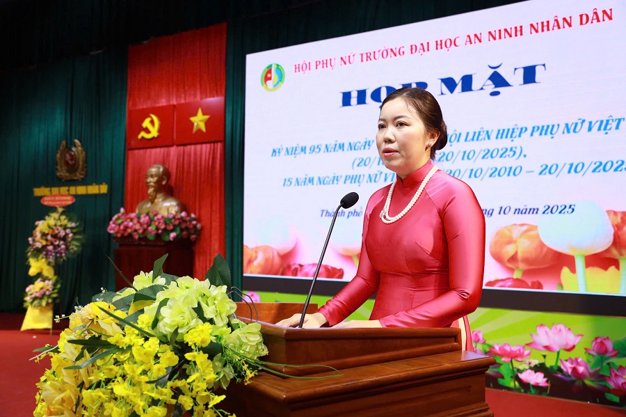 Chương trình họp mặt kỷ niệm 95 năm Ngày thành lập Hội Liên hiệp Phụ nữ Việt Nam và 15 năm Ngày Phụ nữ Việt Nam tại Trường Đại học An ninh nhân dân đã diễn ra trong không khí ấm áp, trang trọng và ý nghĩa. Chương trình không chỉ là dịp tôn vinh vai trò, đóng góp của phụ nữ mà còn góp phần củng cố tinh thần đoàn kết, khơi dậy niềm tự hào và trách nhiệm của mỗi cán bộ, hội viên trong hành trình xây dựng hình ảnh người phụ nữ Công an nhân dân “Tự tin - Tự trọng - Trung hậu - Đảm đang” trong thời kỳ mới.