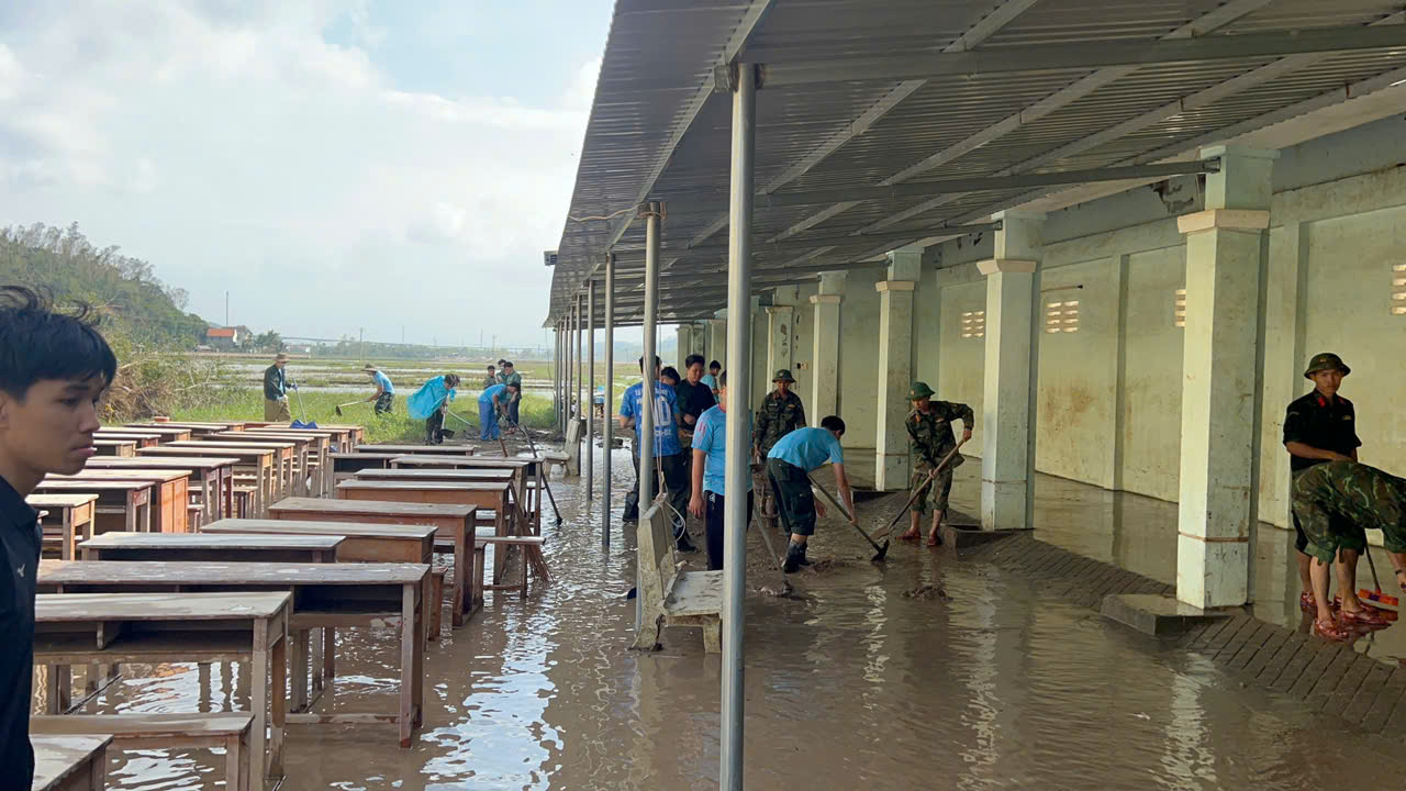 Hỗ trợ dọn, rửa trường học, sửa nhà bị sạt lở, tốc mái