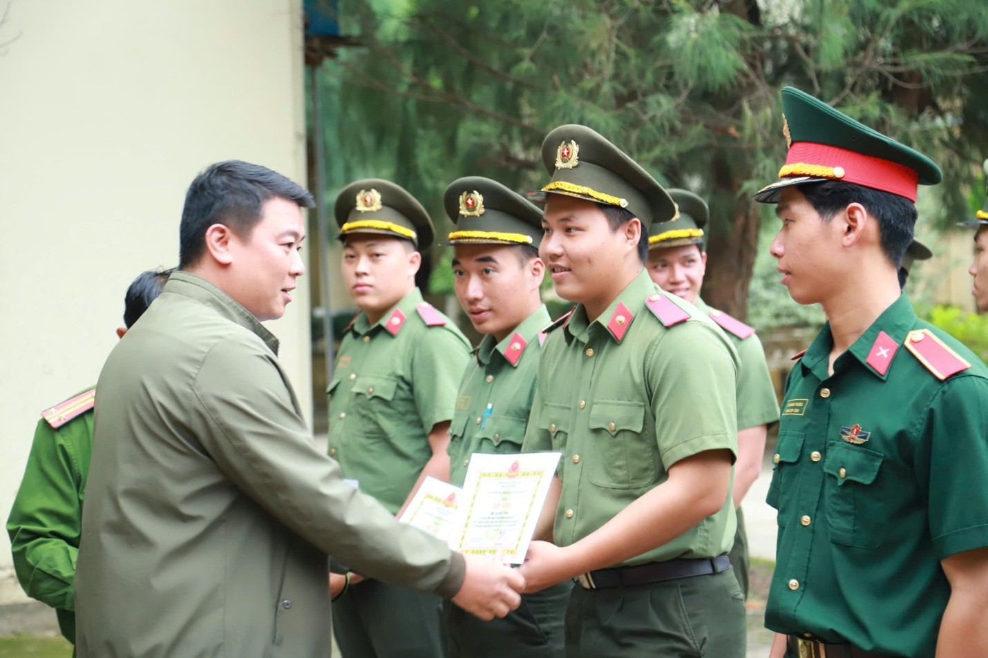 Đại diện chính quyền xã trao giấy khen cho học viên tham gia chi viện
