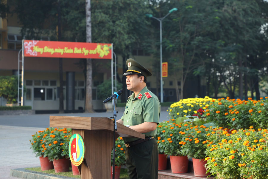 Tại buổi lễ, bên cạnh thông tin nhanh thành công của Đại hội đại biểu toàn quốc lần thứ XIV của Đảng, đánh giá kết quả công tác Tháng 01, đồng chí Hiệu trưởng đã gửi lời chúc mừng năm mới Xuân Bính Ngọ 2026 tới toàn thể cán bộ, giảng viên, học viên; ghi nhận, biểu dương tinh thần trách nhiệm, sự đoàn kết, sáng tạo trong thực hiện nhiệm vụ năm 2025, đồng thời bày tỏ kỳ vọng một năm mới với khí thế mới, quyết tâm mới và nhiều thắng lợi mới, góp phần xây dựng Trường Đại học An ninh nhân dân ngày càng phát triển vững mạnh.