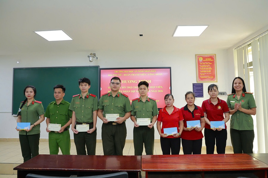 Nhằm thiết thức tổ chức các hoạt động chào mừng Đại hội XIV của Đảng, bầu cử đại biểu Quốc hội khóa XVI và đại biểu hội đồng nhân dân các cấp nhiệm kỳ 2026-2031, hưởng ứng phong trào thi đua “Ba nhất: Kỷ luật nhất - Trung thành nhất - Gần dân nhất” do Bộ Công an phát động, với tinh thần tương thân tương ái, chung tay chăm lo đời sống cán bộ, đoàn viên, hội viên và các hoàn cảnh khó khăn nhân dịp Tết Nguyên đán, từ ngày 02/02 đến ngày 09/02/2026, Hội Phụ nữ, Đoàn Thanh niên và Công đoàn Trường Đại học An ninh nhân dân (ANND) đã phối hợp tổ chức chuỗi hoạt động thiết thực, ý nghĩa trong và ngoài Trường, góp phần lan tỏa hình ảnh đẹp của các tổ chức quần chúng tại Trường Đại học ANND.