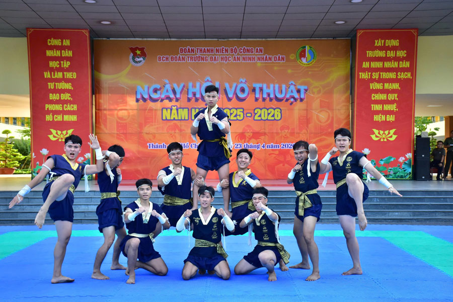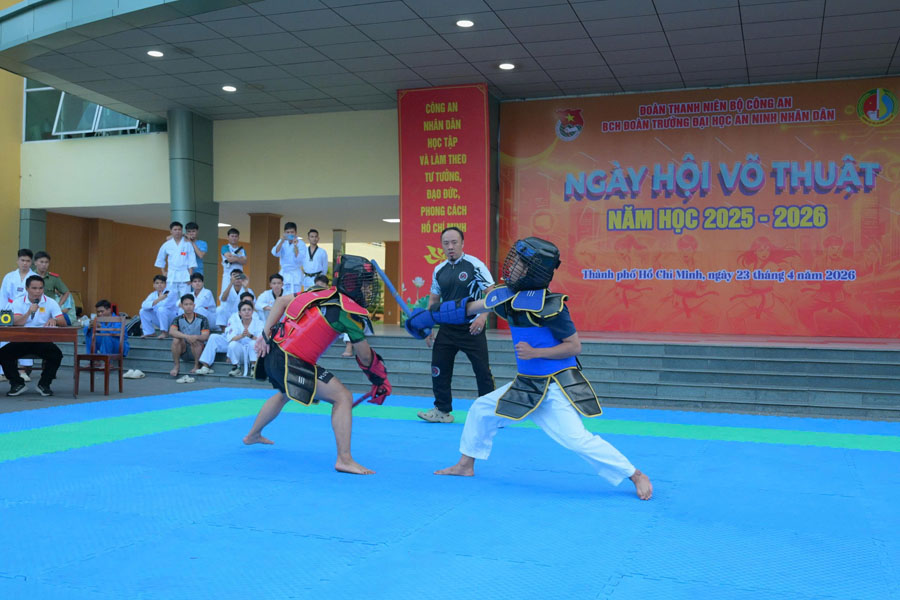 Trong không khí thi đua sôi nổi lập thành tích chào mừng các ngày lễ lớn của đất nước, ngày 23/4/2026, Đoàn Thanh niên Trường Đại học An ninh nhân dân đã tổ chức thành công Ngày hội võ thuật thanh niên năm học 2025 – 2026, thu hút sự tham gia đông đảo của cán bộ, giảng viên và học viên toàn Trường.