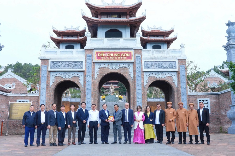 Đồng chí Thiếu tướng Trần Văn Tuấn, Bí thư Đảng ủy, Hiệu trưởng Nhà trường cùng đoàn công tác đến thăm, dâng hương, dâng hoa tại Đền Chung Sơn