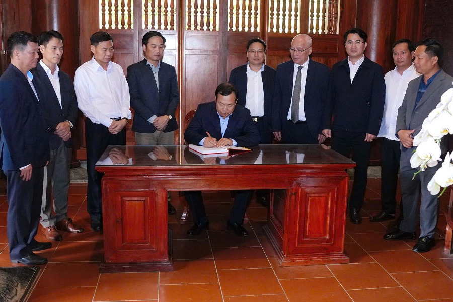 Đồng chí Thiếu tướng Trần Văn Tuấn, Bí thư Đảng ủy, Hiệu trưởng Nhà trường ghi sổ lưu niệm tại Khu di tích Quốc gia đặc biệt Kim Liên