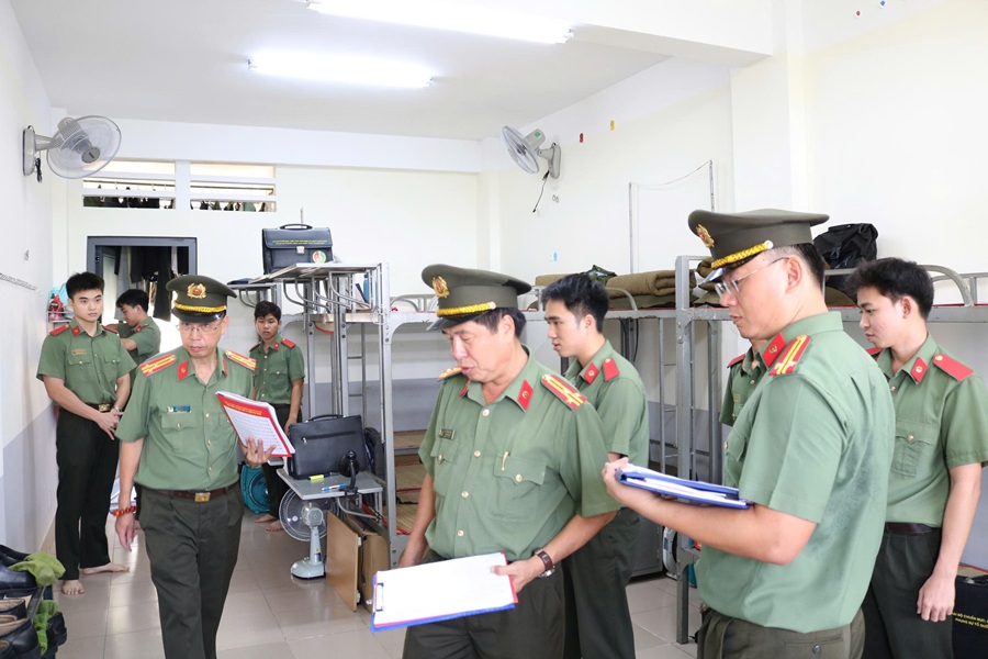 Ban Giám khảo kiểm tra, chấm điểm phần thi kiểm tra nội vụ, vệ sinh phòng ở của học viên