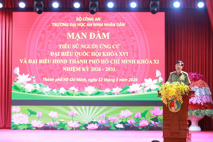 Chiều ngày 12/3/2026, Đảng ủy, Ban Giám hiệu Trường Đại học An ninh nhân dân đã tổ chức buổi mạn đàm về tiểu sử các ứng cử viên đại biểu Quốc hội khóa XVI và đại biểu Hội đồng nhân dân Thành phố Hồ Chí Minh khóa XI, nhiệm kỳ 2026-2031. Buổi mạn đàm do đồng chí Đại tá Nguyễn Trần Hiếu, Phó Bí thư Đảng ủy, Phó Hiệu trưởng Nhà trường, Tổ trưởng Tổ bầu cử số 24-Trường Đại học An ninh nhân dân chủ trì. Tham dự chương trình có các đồng chí trong Đảng ủy, đại diện Ủy ban Mặt trận Tổ quốc Việt Nam phường Linh Xuân; cùng đông đảo cán bộ, giảng viên, nhân viên và học viên tham gia bầu cử tại Nhà trường. Chương trình được tổ chức trực tiếp tại Hội trường Thư viện và truyền trực tuyến đến Khu Giảng đường.