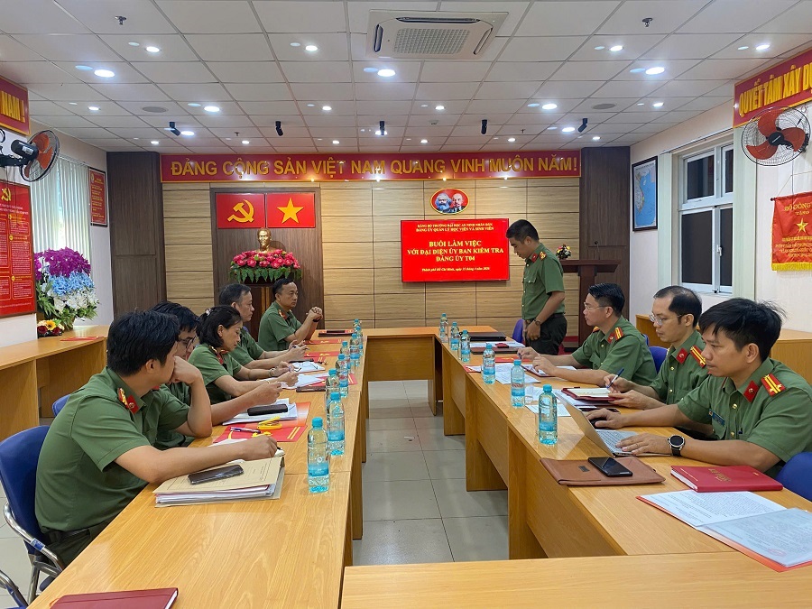 Thực hiện Kế hoạch số 03-KH/UBKT, ngày 06/4/2026 của Thường trực Ủy ban Kiểm tra (UBKT) Đảng ủy Trường Đại học An ninh nhân dân về nắm tình hình phục vụ công tác kiểm tra, giám sát và thi hành kỷ luật của Đảng trong Đảng bộ Nhà trường, từ ngày 15 đến ngày 17/4/2026, Tổ Công tác gồm 05 thành viên, do đồng chí Thượng tá Nguyễn Tiến Hùng, Phó Chủ nhiệm Thường trực UBKT Đảng ủy làm Tổ trưởng, đã tổ chức 04 buổi làm việc với Đảng ủy Quản lý học viên và Sinh viên, Chi ủy Phòng Chính trị, Ban Thường vụ Đoàn Trường và các cấp ủy chi bộ khối học viên.
